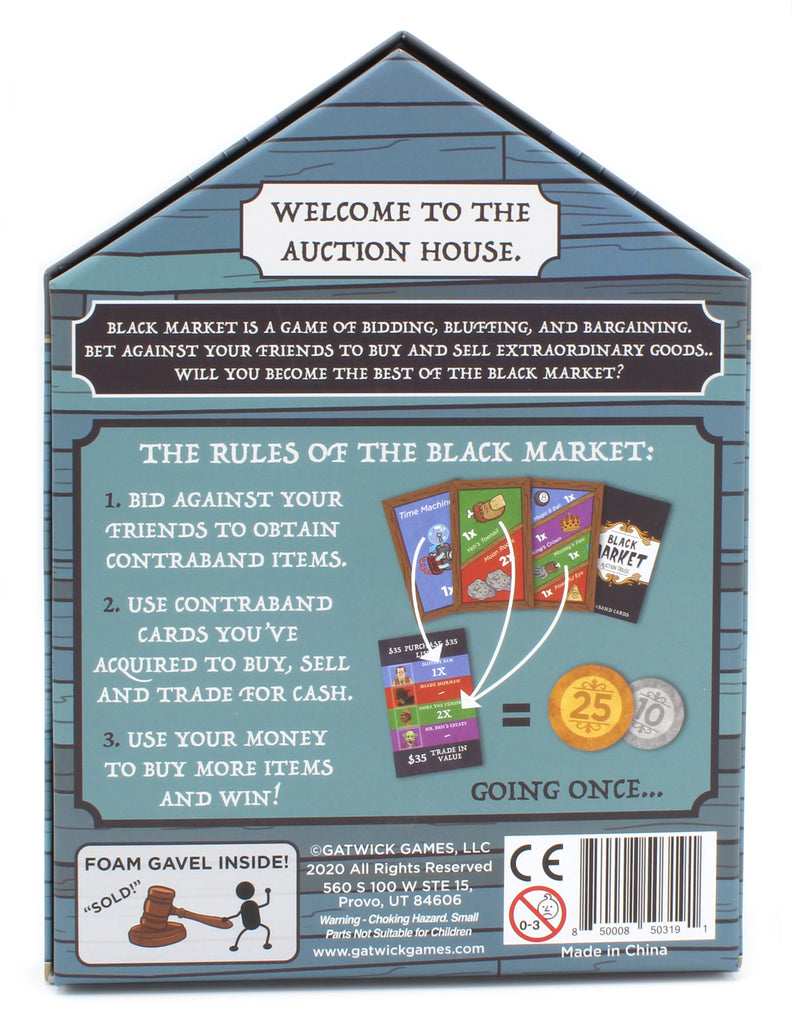 Welcome to the Black Market Auction House - a place of bluffing, bargaining, risking taking, and bidding against your friends to buy and sell extraordinary goods at the most unconventional of auctions. The goal of this Black Market Auction is to accumulate the most wealth (in the form of dollars/coins) by buying and selling unique items from the most fascinating of characters (the Sellers).