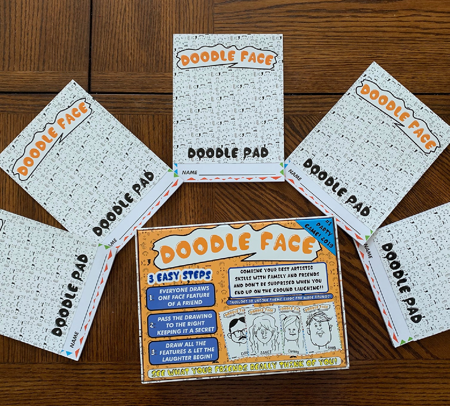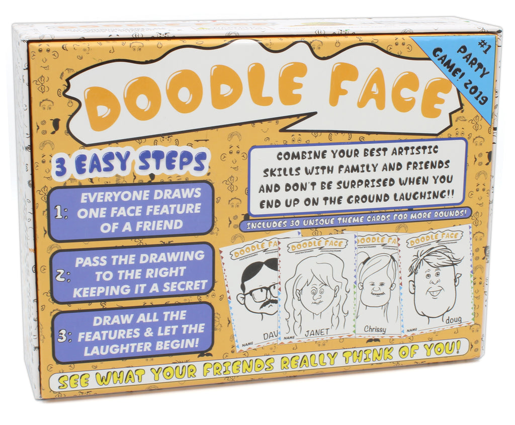 What Is Doodle Face? Basically, it’s drawing... Potluck style. Except instead of bringing your favorite food dish to the party, you get to contribute your very own interpretation/drawing of your friend's facial features! Together, your contributions become masterpieces, or maybe not... Just don’t take the finished piece too personally... because soon you’ll want to doodle face again!