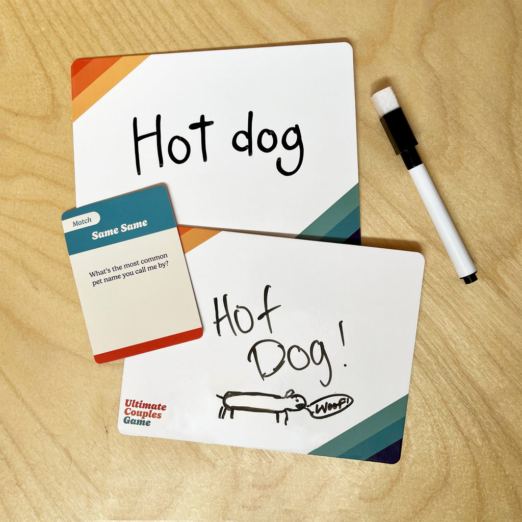 In this game, each player is supplied with a whiteboard and marker - then you and your partner try to get points! The couple that knows the most wins! Work together to share and match answers, guess trivia, and do exciting challenges. Maybe you have to write love poems, or maybe you figure out a puzzle together. Do you know each other... or not? Whether reminiscing on the past or looking towards the future - discovery (for married couples & more) is in this couple's game.